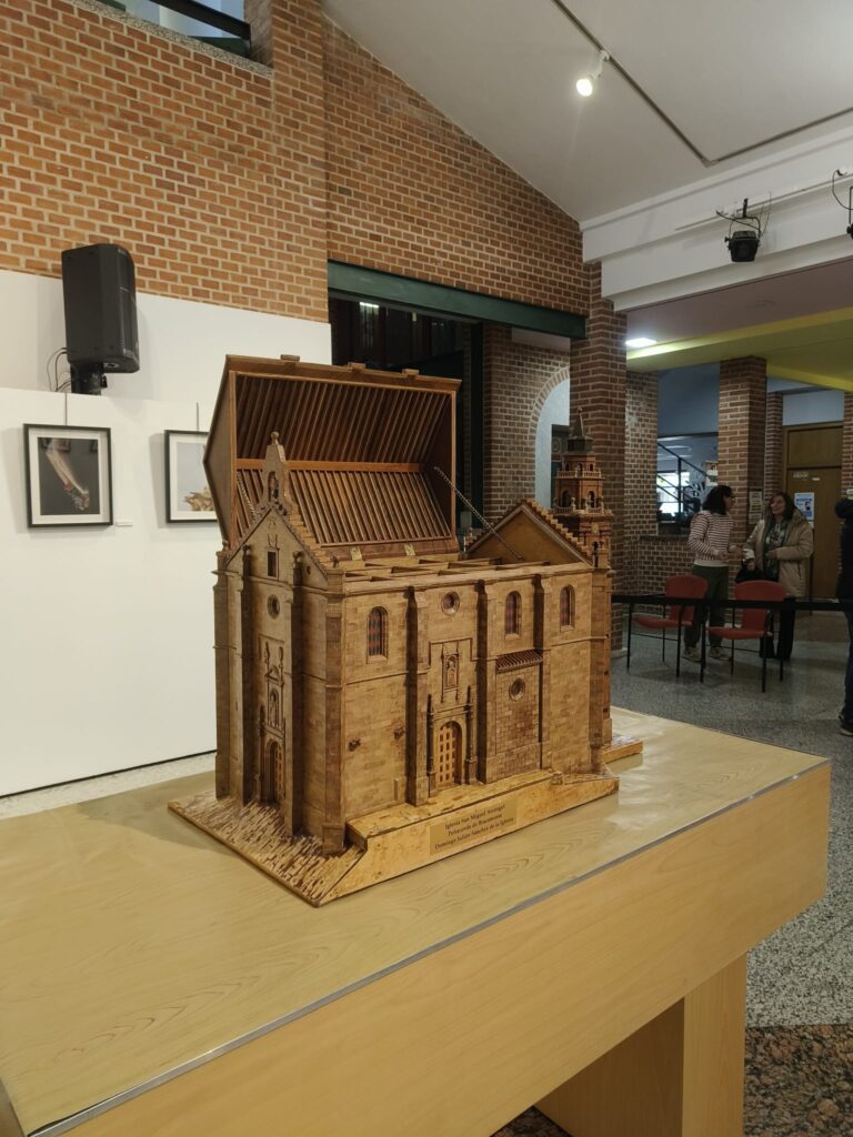 Como complemento a esta exposición también se ha expuesto en el zaguán del Centro Cultural una bonita maqueta de la iglesia parroquial «San Miguel Arcángel» de Peñaranda, compuesta por 65.000 piezas, de maderas nobles y realizada por el peñarandino Julián Sánchez de la Iglesia, durante los últimos veinte años. El autor estuvo acompañado por su esposa, Pilar García Serrano, y varios familiares. Una auténtica obra de arte que merece la pena ser admirada.