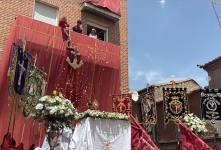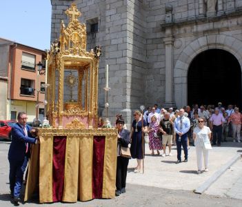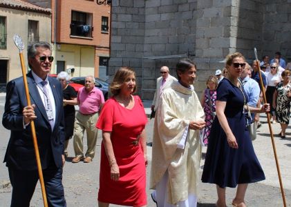 La parroquia San Miguel Arcángel de Peñaranda celebró la fiesta solemne del Corpus Christi con una Eucaristía en el templo -abarrotado de fieles- y una procesión por las calles y plazas peñarandinas. La comitiva se detuvo en la Puerta del Sol, donde tuvo lugar la adoración pública al Santísimo Sacramento, sobre un extraordinario escenario adornado por la Hermandad de Cofradías. Participaron los niños y niñas que este año recibieron la Primera Comunión, y un público numeroso que acompañó los cánticos propios de esta celebración.