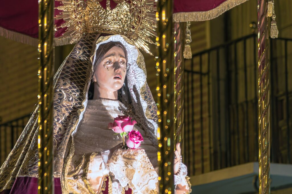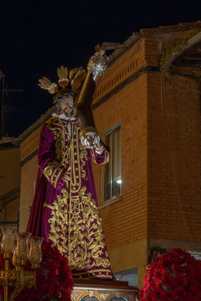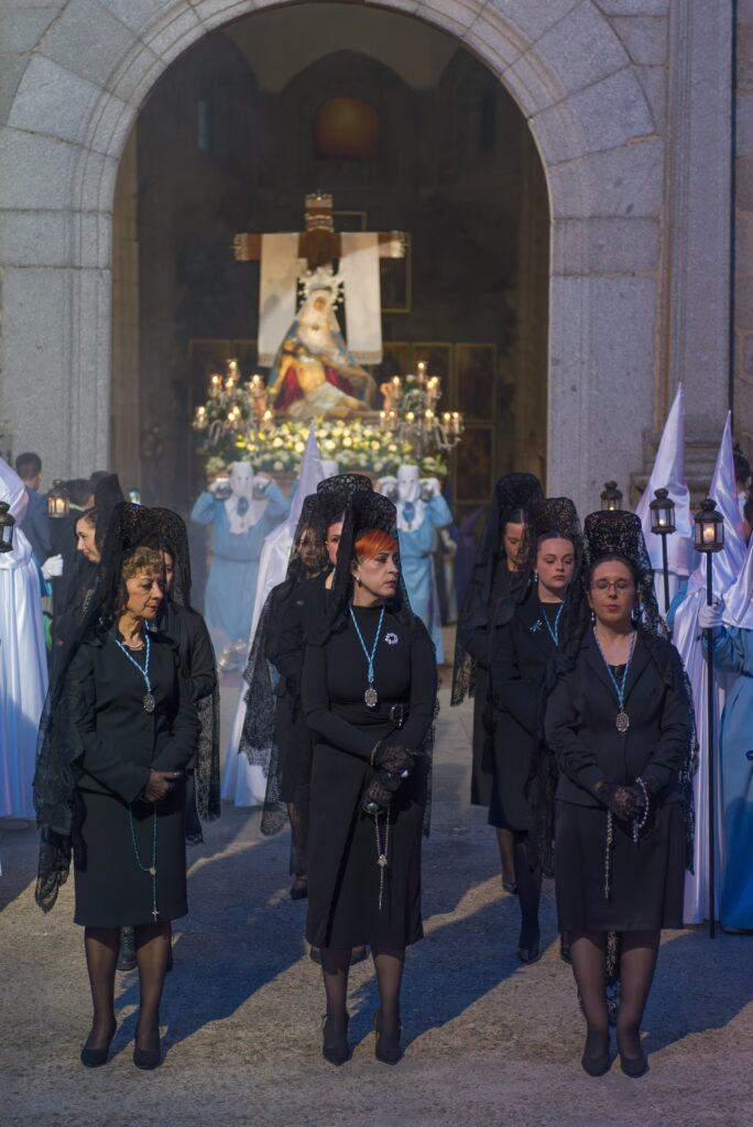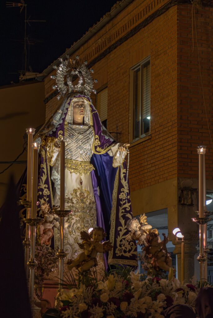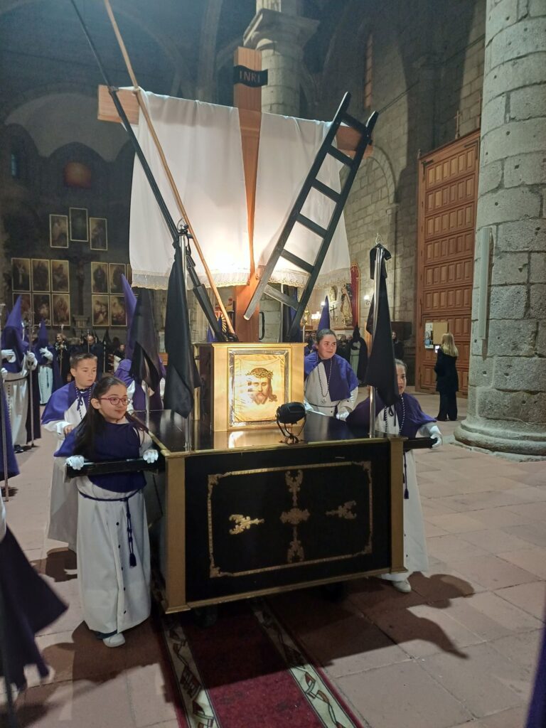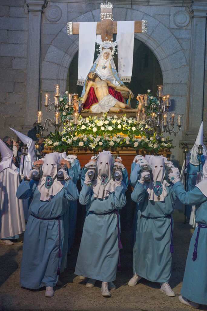 Después, la Vera Cruz (San Luis) presentó “El Calvario”, una escena de gran fuerza visual que condensaba el momento culminante de la crucifixión, seguido por Nuestra Señora de la Piedad, sosteniendo el cuerpo sin vida de su Hijo en una composición de sobrecogedora ternura.