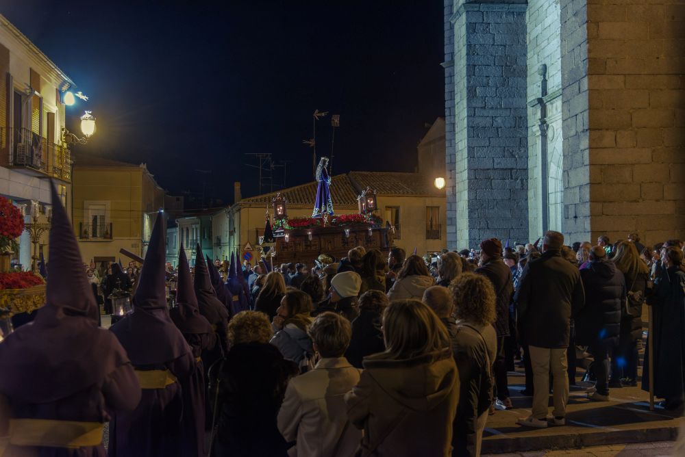 Cerró la procesión la cofradía de la Virgen de la Soledad. Su paso titular, Nuestra Señora de la Soledad, puso el broche final con una estampa de dolor sereno y definitivo. La imagen, sola ante la noche, parecía resumir todo el sentido de la jornada: la pérdida, el duelo y la espera.
