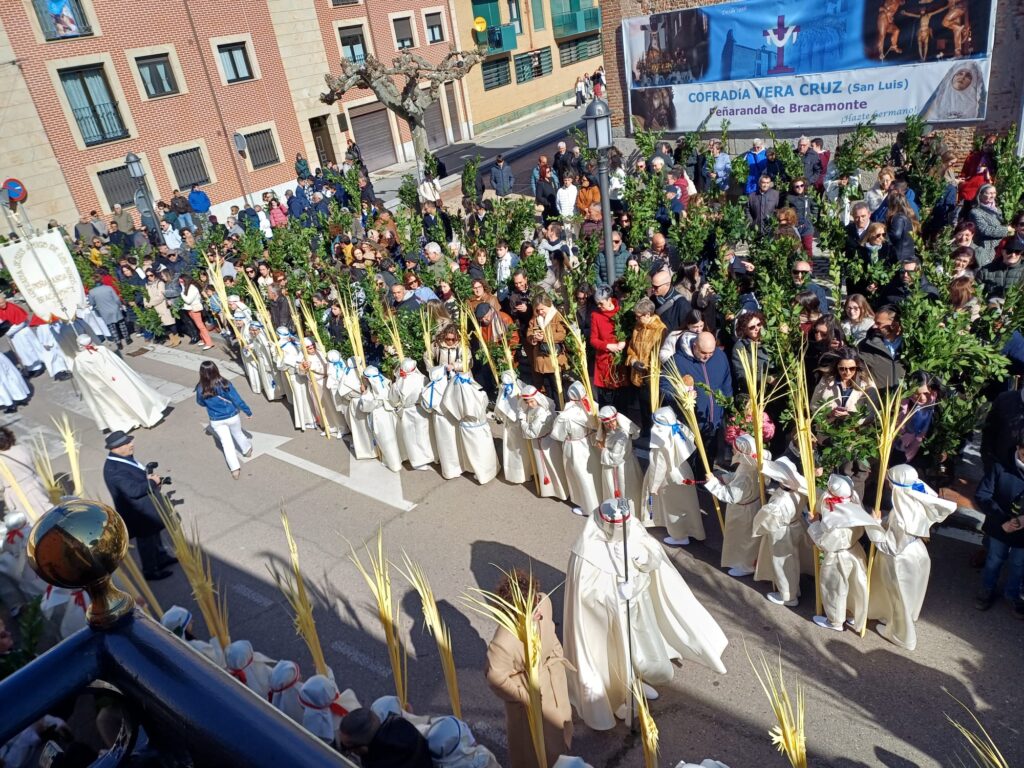 Peñaranda de Bracamonte amaneció vestida de fiesta en la mañana fría del Domingo de Ramos, con ese aire luminoso que anuncia el inicio de la Semana Santa. Desde primeras horas, las inmediaciones de la Iglesia de San Luis comenzaron a llenarse de familias, niños y cofrades, todos preparados para acompañar la tradicional Procesión de los Ramos, organizada por la Hermandad de Cofradías de Semana Santa, junto a la Cofradía de Jesús Amigo de los Niños.